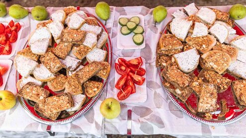 Mit unserem Motto „Regional genießen“ möchten wir uns von der üblichen Verpflegung bei Radtouren abheben und das Essen und Trinken etwas genussvoller gestalten. Es soll nicht nur um die Kalorienzufuhr gehen, sondern auch um den Geschmack. Deshalb bestücken wir unsere Verpflegungspunkte zum Beispiel mit liebevoll geschmierten Broten, Käsewürfeln, Quiches und Kuchen sowie Obst und Gemüse mit ausschließlich regionalen Produkten.