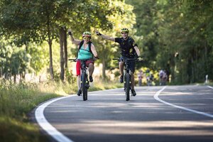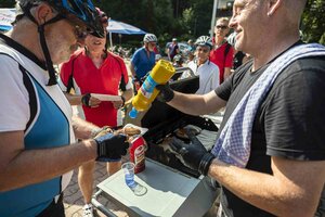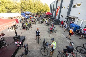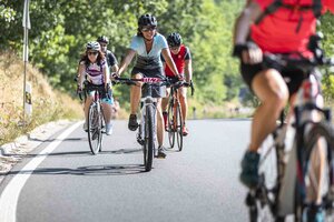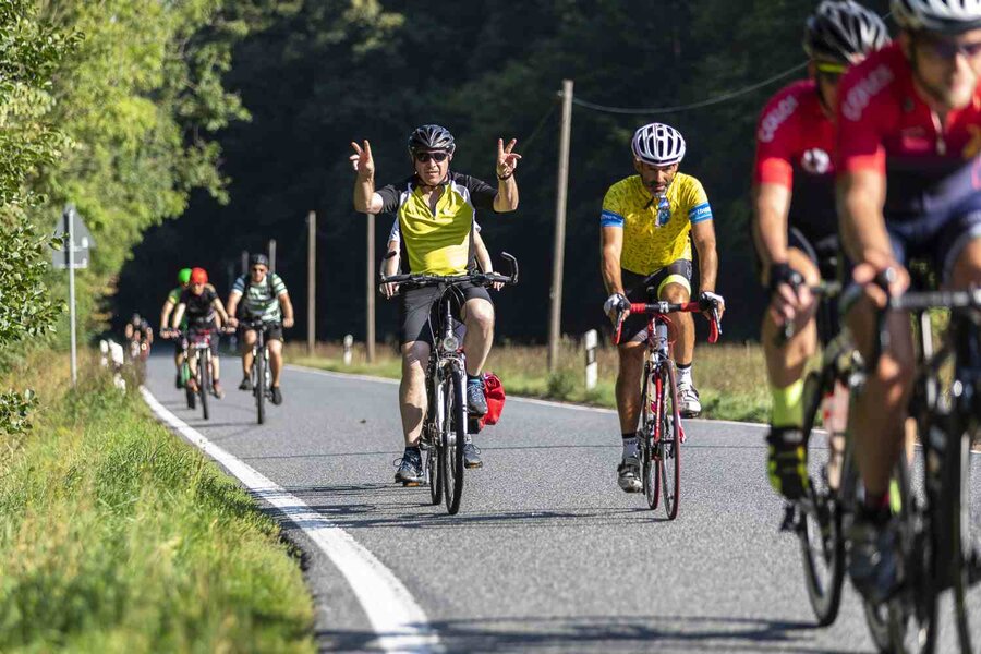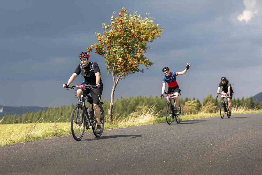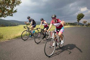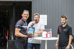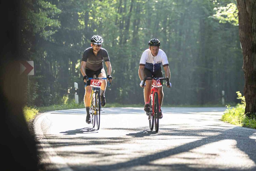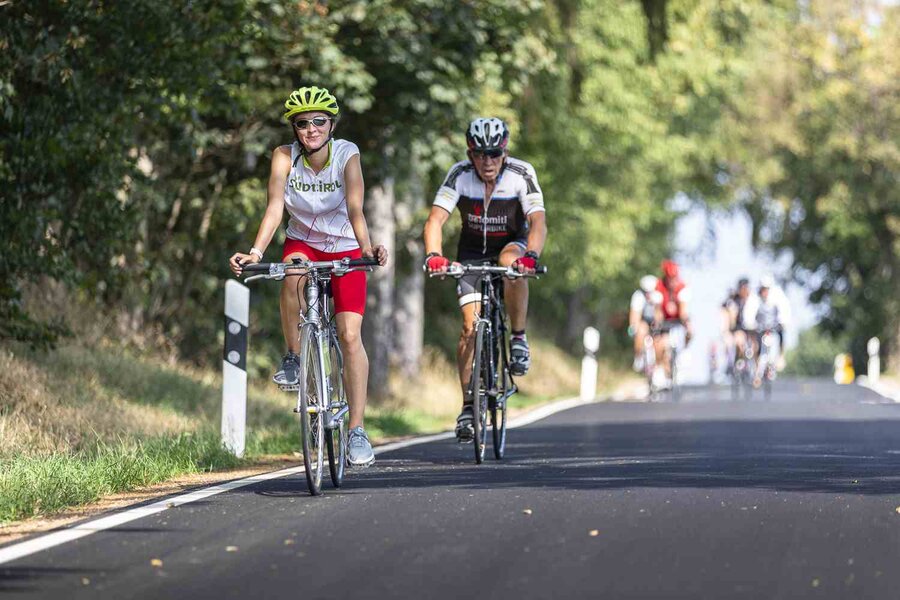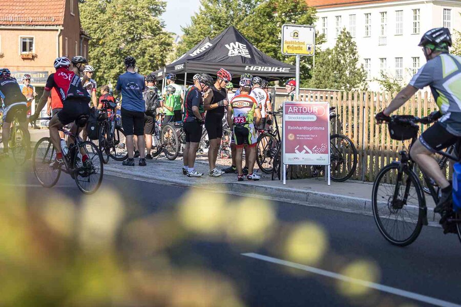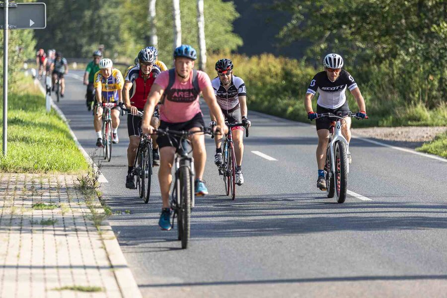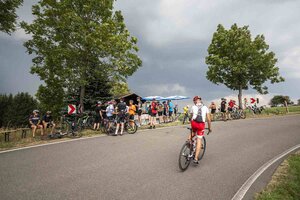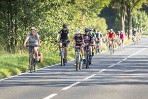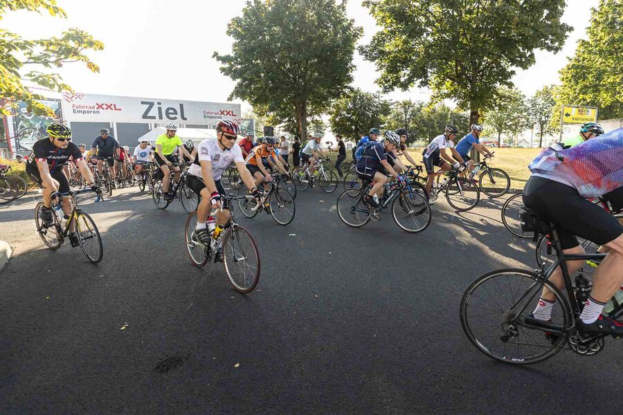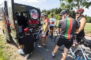 Auf der Strecke begleiteten die Teilnehmer*innen Service- und Sani-Fahrzeuge von Fahrrad XXL und DRK.