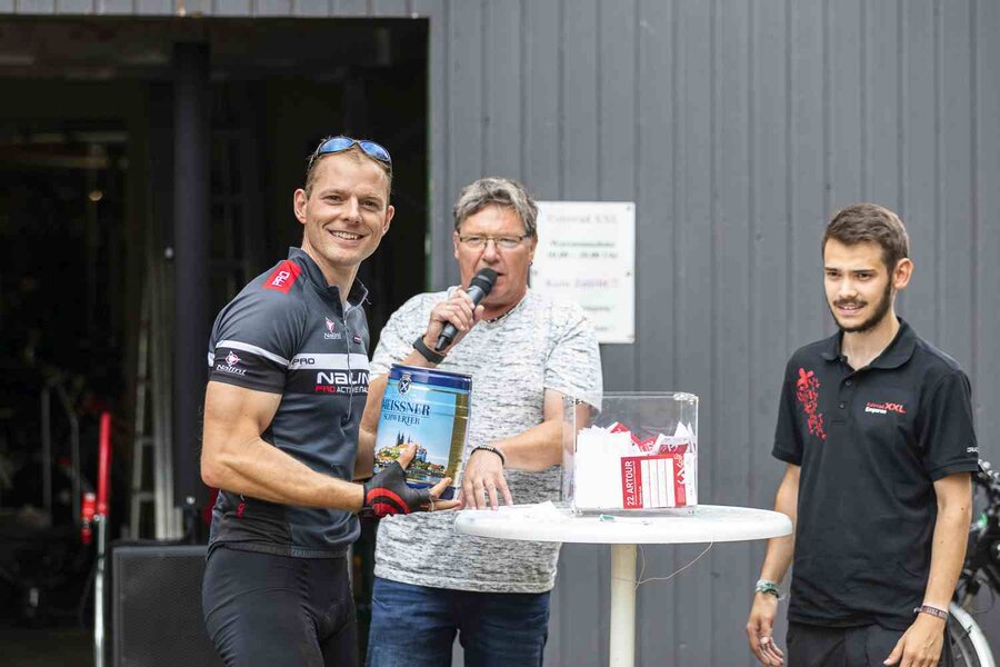 Unter dem Motto „regional genießen“ konnten sich die Teilnehmer*innen an fünf Versorgungsposten bedienen. Diese waren reich gedeckt mit Käse, Knacker, beschmierten Broten, Bratwürsten, Kuchen und Keksen, Obst, Gemüse und auch Saft, Wein und Bier aus der Region. Vielen Dank an unsere Sponsoren. Mit dabei waren Oppacher, Meißner Schwerter Bier, Aronia, Biobäckerei Heller, Hotel Ladenmühle, Obsthändler Veos und Delikatessen-Schröter aus Thiendorf.