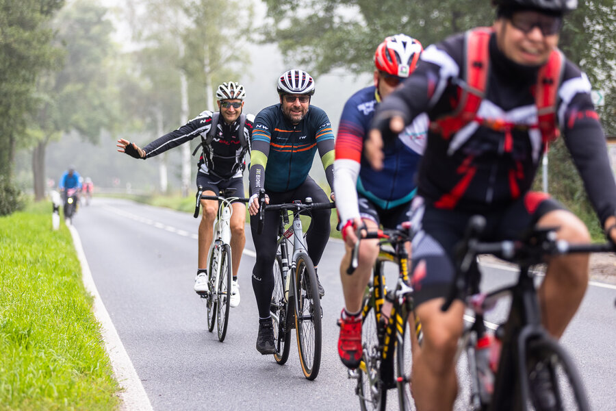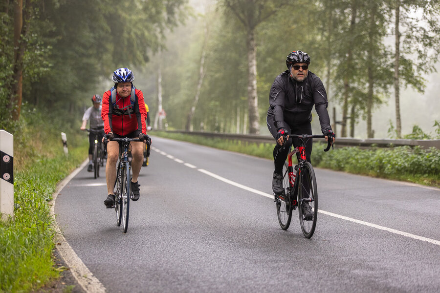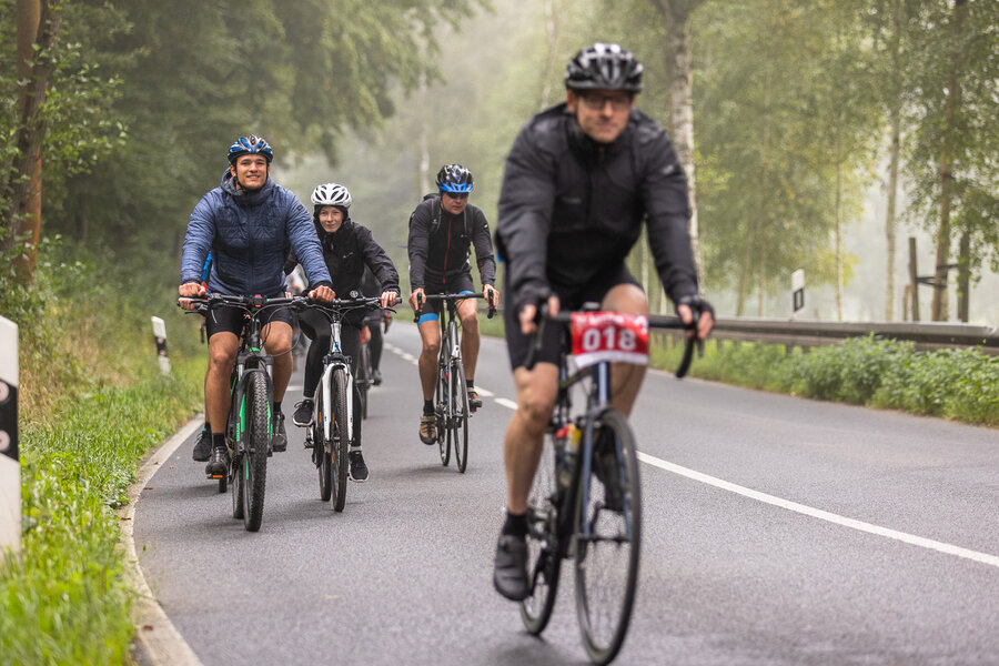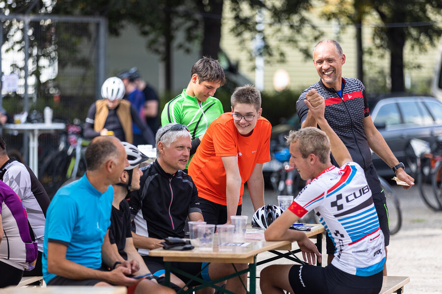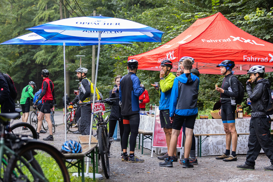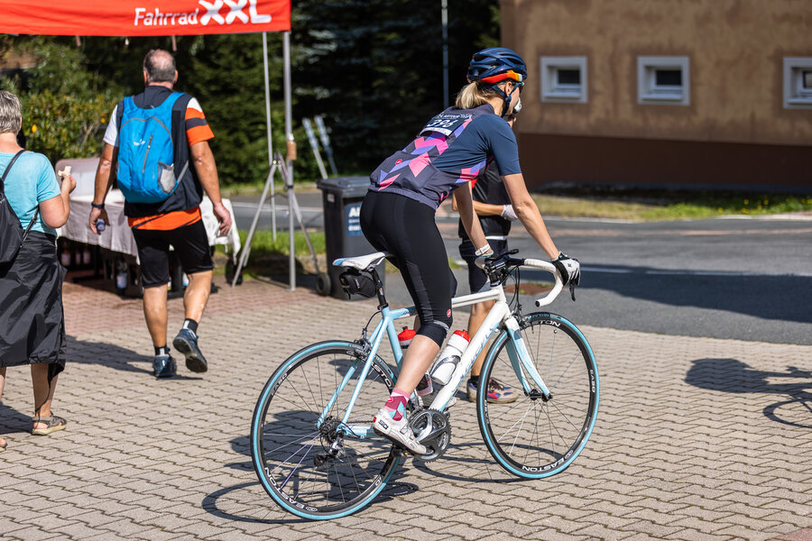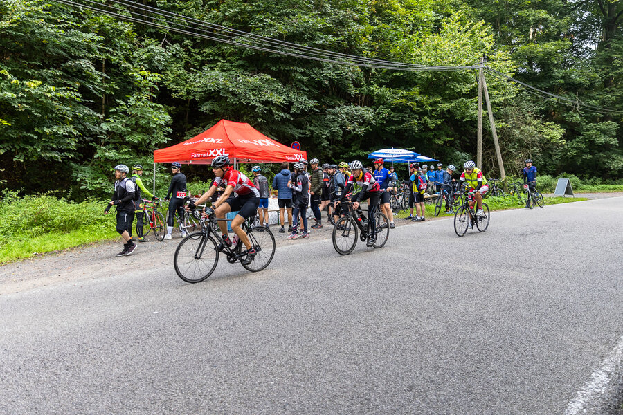 Die längste Strecke über 100 km und 1.300 Hm nach Altenberg radelten über die Hälfte der Teilnehmer*innen. Wer es nicht ganz bis oben schaffte, konnte an drei weiteren Wendepunkten eine kürzere Route wählen über 65 km, über 45 km oder über 30 km.