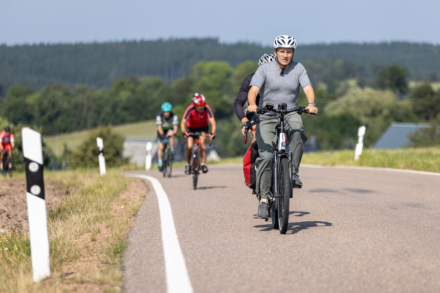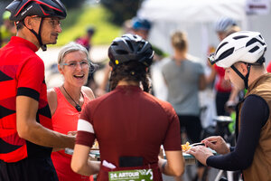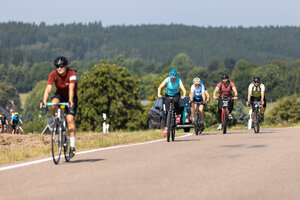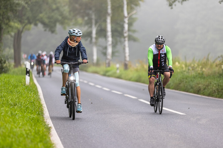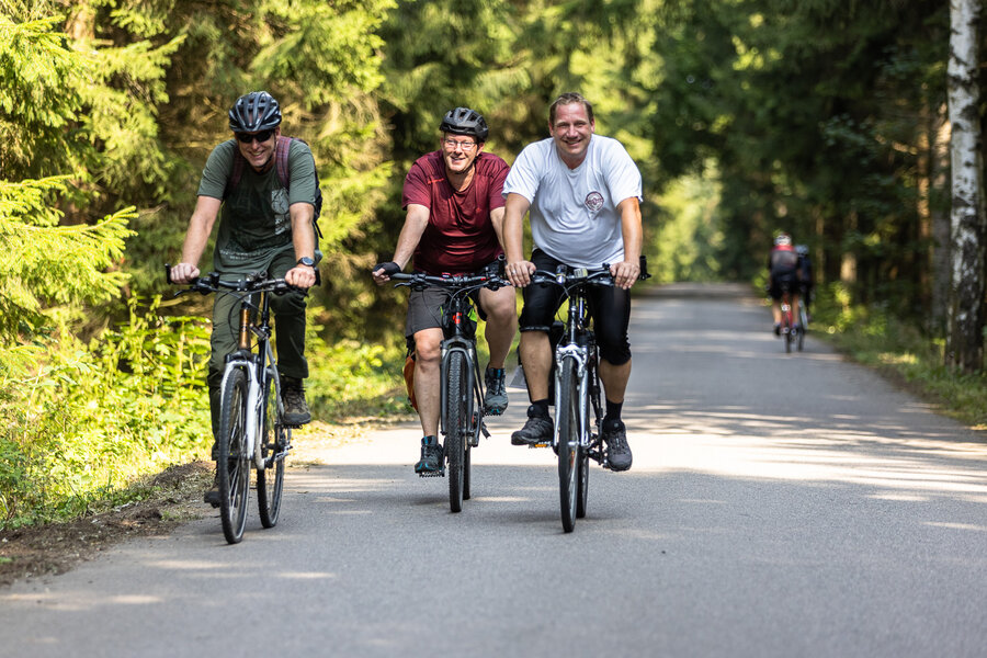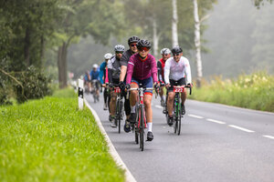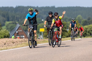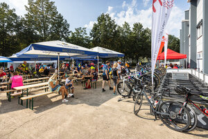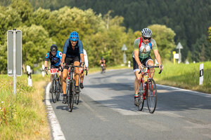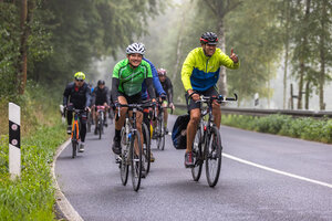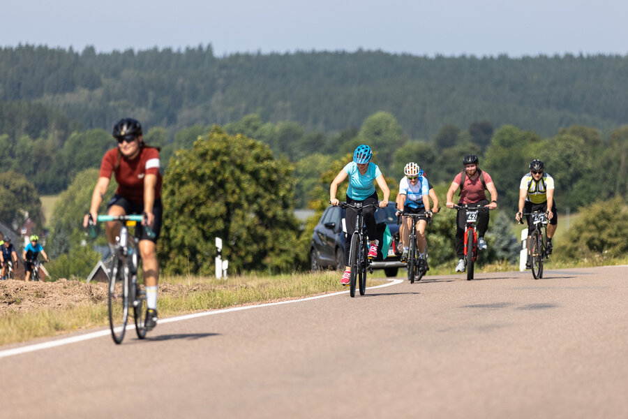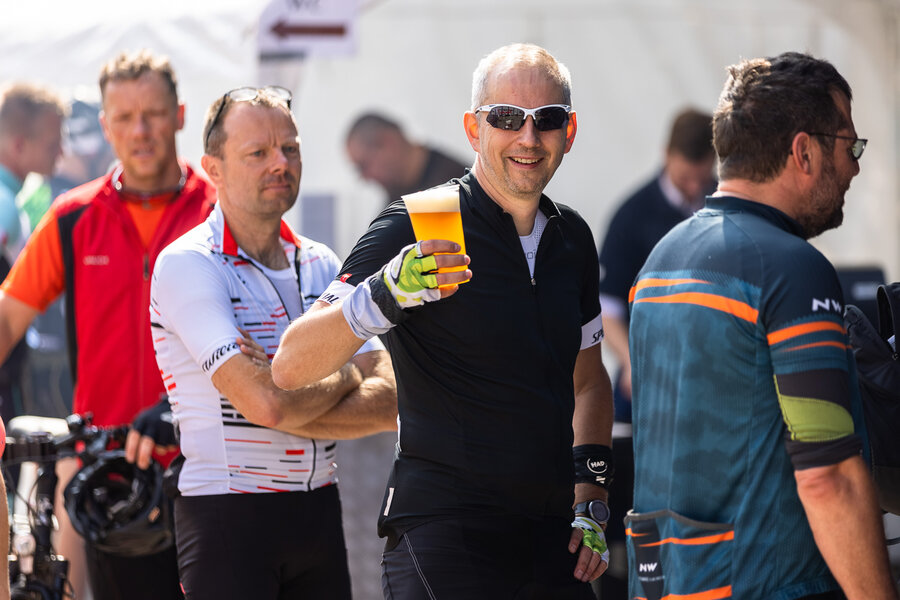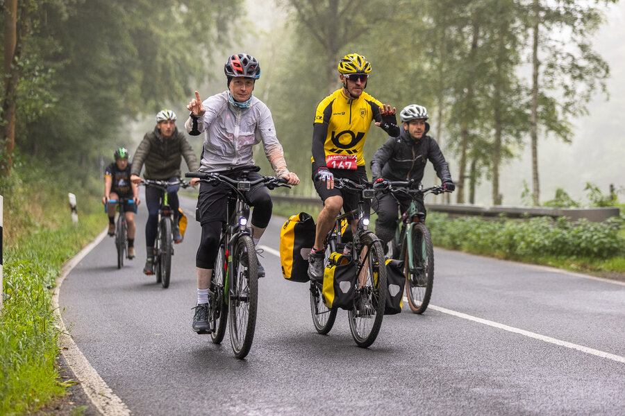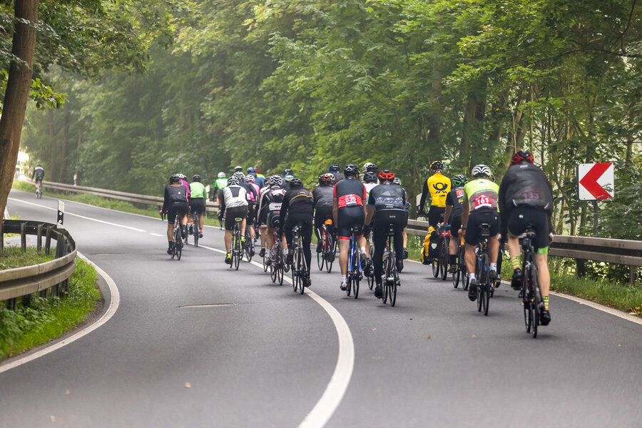 Die längste Strecke über 100 km und 1.300 Hm nach Altenberg radelten über die Hälfte der Teilnehmer*innen. Wer es nicht ganz bis oben schaffte, konnte an drei weiteren Wendepunkten eine kürzere Route wählen über 65 km, über 45 km oder über 30 km.