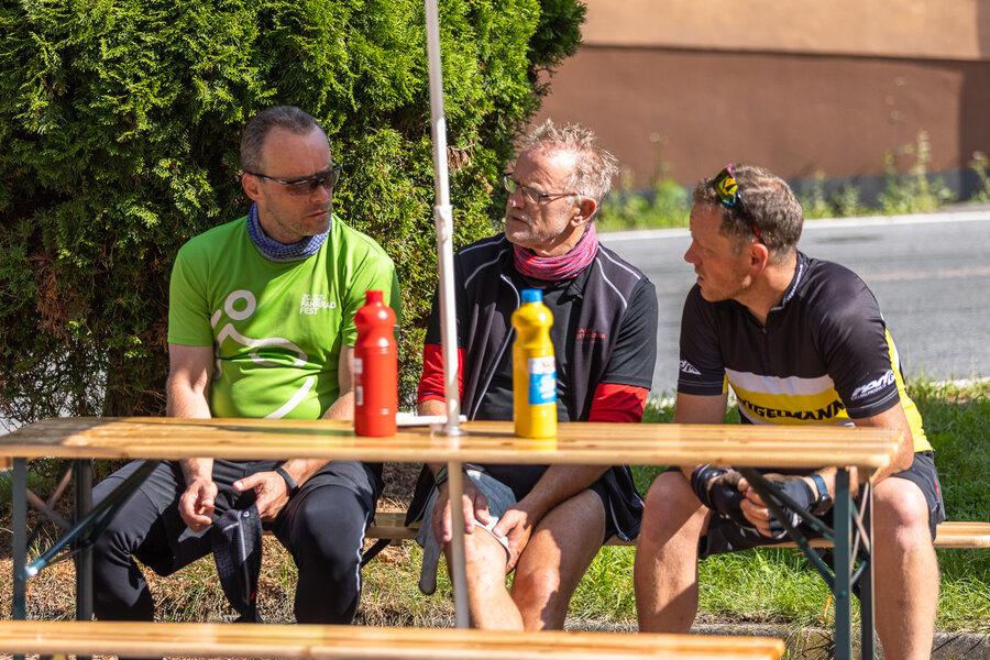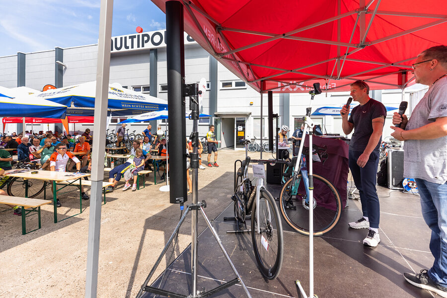 Am Schluss ließen wir die Radtour gemütlich ausklingen. Wir verlosten in vier Tombolaziehungen viele tolle Preise wie z.B. Fahrradzubehör, Gutscheine vom Hotel Ladenmühle in Hirschsprung und vom Hotel Lugsteinhof in Zinnwald. Begleitet wurde alles mit Musik vom DJ Happy Legs.