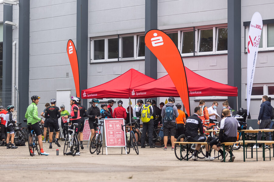 Gestartet wurde am Fahrrad XXL in Dresden-Nickern in verschiedenen Zeitfenstern, sodass sich das Teilnehmerfeld bestens auseinander zog.